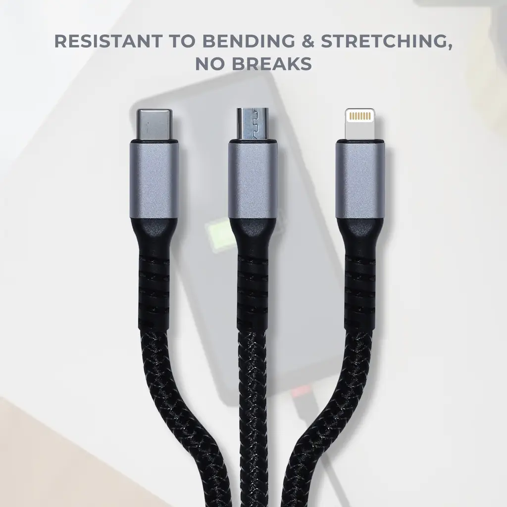 - 3-in-1 Multi-Connector Design – Compatible with Micro USB, Type-C, and Lightning devices.